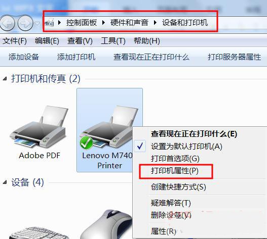 Win7系统 点击 开始——设备和打印机(打开控制面板也可以找到设备和打印机)