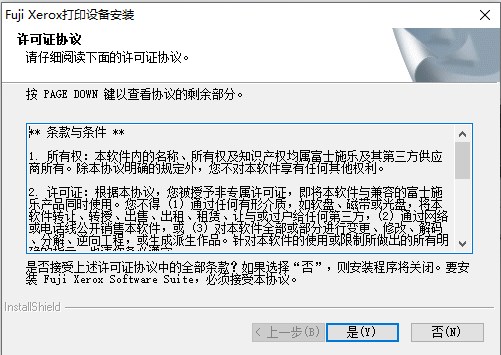 5、弹出富士施乐P228db打印机驱动许可协议,直接点击“是”即同意协议