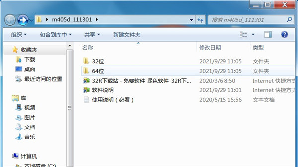 1、从本站下载惠普m405d打印机驱动压缩包后,将其解压后即可看到32/64位的驱动适配版本;