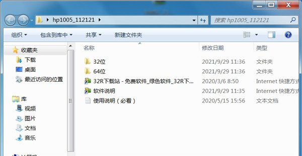 1、从本站下载惠普1005扫描打印机驱动压缩包后,将其解压后即可看到32/64位的驱动适配版本;