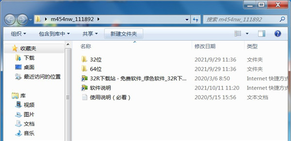 1、从本站下载惠普hp m454nw打印机驱动压缩包后,将其解压后即可看到32/64位的驱动适配版本;