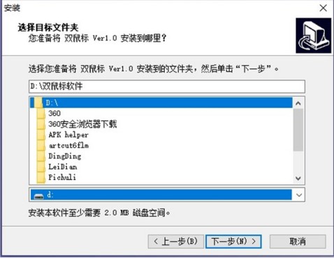 1、用户下载软件选择安装路径,打开程序,点击“安装usb鼠标”