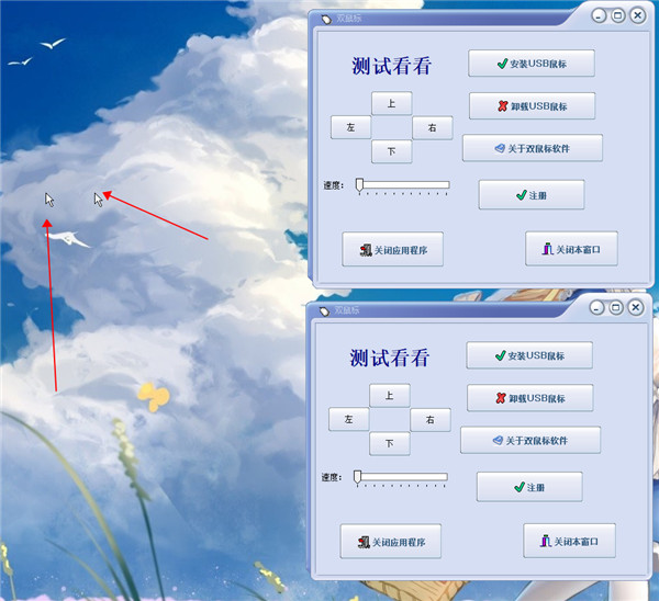 3、支持多个软件同时开启,调整移动速度,之后即可进行双鼠标操作