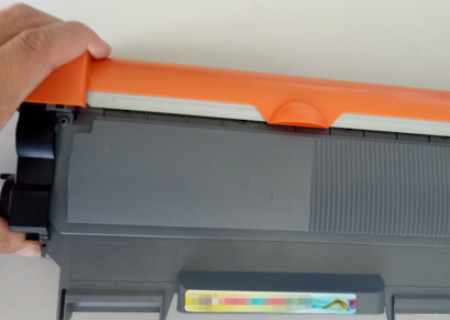 3、之后抓住打印机一体机的硒鼓盒。