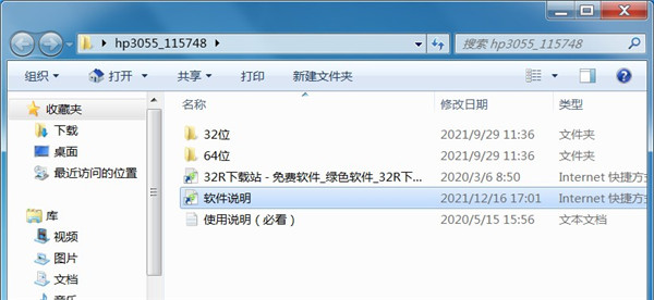1、从本站下载惠普3055驱动压缩包后,将其解压后即可看到32/64位的驱动适配版本;