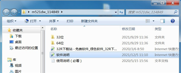 1、从本站下载惠普m521dw驱动压缩包后,将其解压后即可看到32/64位的驱动适配版本;