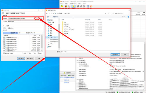 2、接着界面上会弹出一个新建BT任务窗口,我们点击窗口右上角的三个小点按钮进入文件保存路径选择页面;在文件保存路径选择页面中选好文件的保存位置后,再点击页面右下角的“选择资料夹”按钮。
