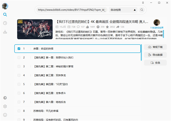 BiliTools给我个人使用感受比较深刻就是当视频网址里包含了多个剧集,也能自动识别出来,可以启用多选合集里的视频下载,这样不仅可以选择只下载当前这一集视频,也能全选批量下载整个视频剧集的全集,这一功能对于经常要批量下载课程学习视频的小伙伴可以说非常实用。
