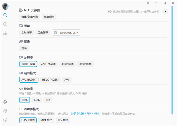 BiliTools允许使用哔哩哔哩账号扫码登录,可自动获取预览记录,支持多种编码格式以及流媒体格式,有需要小伙伴可以下载使用!