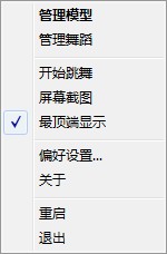 1、托盘右键菜单打开“舞蹈管理”窗口。