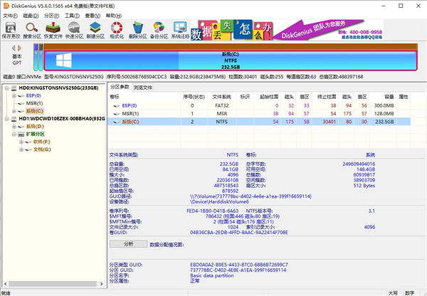 1、支持传统的MBR分区表格式及较新的GUID分区表格式