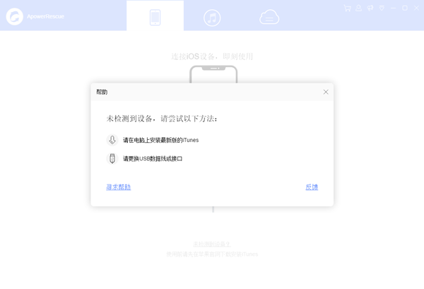 数据恢复软件ApowerRescue,你就能快速恢复因为误删除,格式化,恢复出厂设置以及病毒入侵造成的文件丢失以及未知错误该软件官方版不仅能够恢复丢失文件,还能对手机文件进行及时备份!您可以自己的设备连接到本软件,通过内置的扫描技术和恢复找到已经删除的内容,并将其恢复到电脑,从而帮助您挽回删除数据造成的损失;这款软件针对苹果设备恢复,造成iPhone手机恢复,支持iTunes备份的数据恢复,只要将设备连接到电脑就可以按照软件的提示立即执行工作,界面也是中文的,每个用户都可以恢复自己删除的数据资源!需要的朋友们赶紧前来下载使用吧!