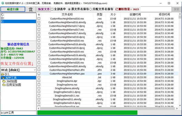 如初数据恢复是一款误删除数据恢复的辅助工具,软件针对Windows系统数据文件误删除、误操作造成的文件丢失,办公文档数据不小心弄丢等情况,可快速帮您扫描且找回文件以避免损失,对于硬盘驱动器、U盘、移动硬盘等存储设备进行物理的磁道扫描及数据恢复。如初数据恢复可以帮助用户恢复那些误操作删除的文件,还能方便用户查看电脑磁盘,还可以来自硬盘,u盘驱动器、可移动硬盘驱动器和其他用于数据恢复的存储设备;如初数据恢复的工作方式是驱动器的物理扇区寻址,针对已删除数据文件查找,搜索出存储器内所有删除过的数据文件,清晰标注出各删除文件属性等详细信息,以方便用户查看及搜索,需要恢复时,点选择即可进行必要的数据文件恢复,有兴趣的小伙伴快来下载体验吧!