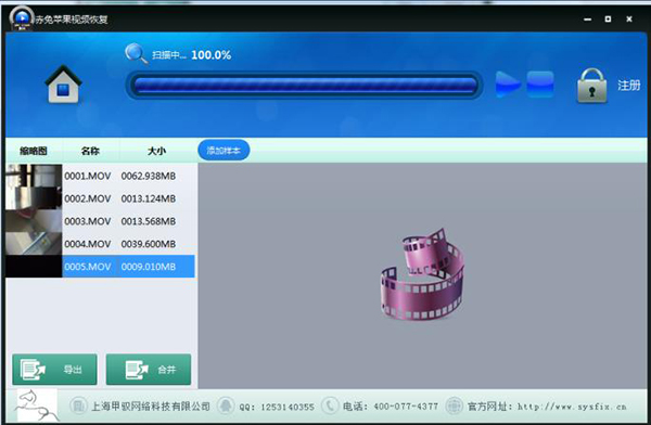 3、“扫描”界面中显示扫描恢复到的手机视频