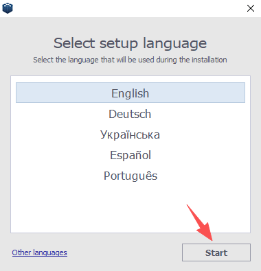 2、选择自己需要的语言,点击start开始安装;