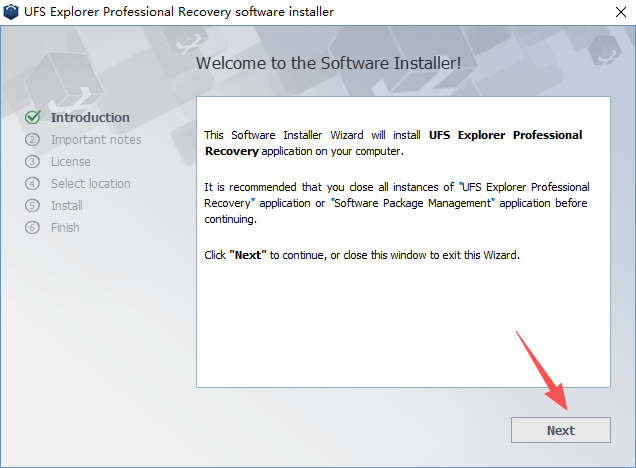 1、下载解压后得到UFS Explorer Professional Recovery程序安装包和激活秘钥,随后运行ufsxpci.exe进行安装;