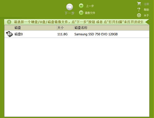 2、选择一个需要恢复的硬盘、U盘、磁盘镜像文件,点击下一步