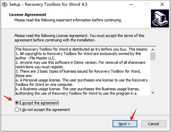 下载、安装并运行Recovery Toolbox for Word演示版。恢复工具箱for Word。