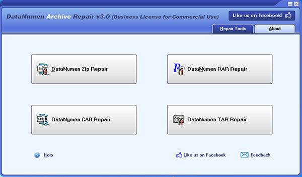 1、软件的界面非常的简约,支持修复Zip,RAR,Microsoft CAB,Unix TAR等文档