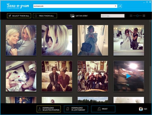 Save-o-gram官方版安装简单,界面美观大方。而且实用性强、易于上手,十分实用和方便。是一款可以下载任意instagram账号中的相册的工具,只需要输入用户名,就可以载入相册,浏览并下载,还支持搜索标签,简单实用,还可以将照片打包或者打印出来。