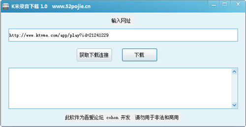 K米录音下载器官方版是一款美观易用、功能强大的下载软件,十分实用和方便,专门用来下载K米录音。简单大方的界面设计让用户一目了然。用户只需将K米上歌曲的播放地址复制到软件中,即可轻松下载这首歌曲资源,非常方便好用!如果你喜欢K米网的某人唱的歌曲可以通过这款软件下载下来。