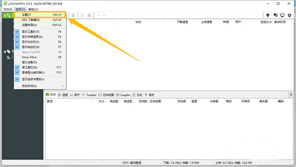 3、在“uTorrent Pro”主界面中,点击左上方的“选项”按钮