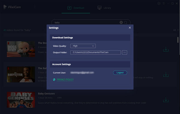 支持下载HD(1080p / 720p)Netflix视频。FlixiCam使您能够从Netflix下载和观看所有最新的高质量视频