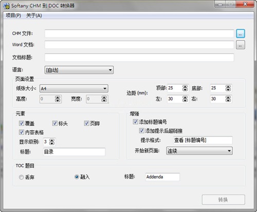 DOC 文件,并包含表的内容、 页眉、 页脚、 页码、 标题编号等。这款 Softany CHM to DOC Converter 可以直接将CHM 文档转化为